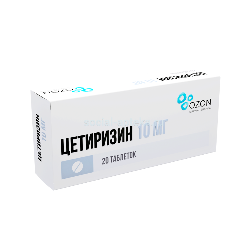 Действующее вещество: цетиризина дигидрохлорид - 10,000 мг.