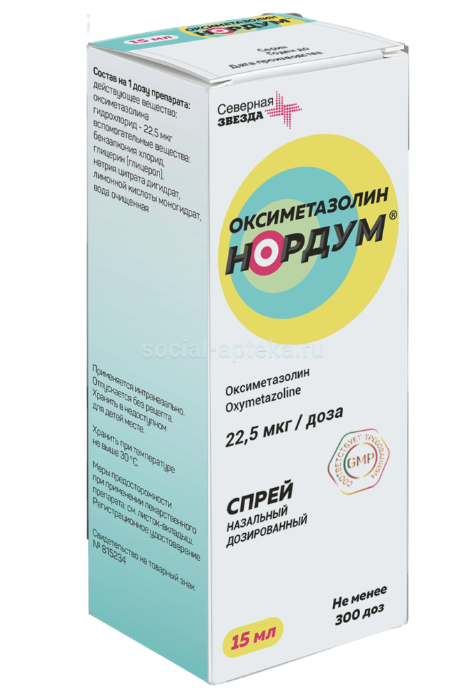 Оксиметазолин Нордум спрей назал 22,5мкг/доза 300доз 15мл (Северная звезда) наличие в аптеках в Астрахани