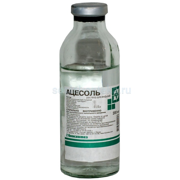 Комбинированный препарат, который оказывает дезинтоксикационное, плазмозамещающее, регидратирующее, диуретическое, противошоковое, антиагрегантное действие. Помимо этого он уменьшает гиповолемию, препятствует сгущению крови и развитию метаболического ацидоза, усиливает диурез, улучшает микроциркуляцию.Фармакокинетика Ионы К+ и Na+ недолго удерживаются в сосудистом русле, быстро распределяются по всем тканям организма. Выводятся преимущественно почками, в небольших количествах через кишечник, потом, слезами и др.В организме ацетат активируется в ацетил-коэнзим А, затем основное количество активного ацетата полностью окисляется в цикле Кребса до углекислого газа и воды. Процесс окисления ацетата происходит в мышечных клетках, поэтому способность организма к его метаболизму в основном зависит от мышечной массы тела. Метаболизм ацетил-КоА может также идти по малому пути окисления с образованием жирных кислот, кетокислот и холестерина.