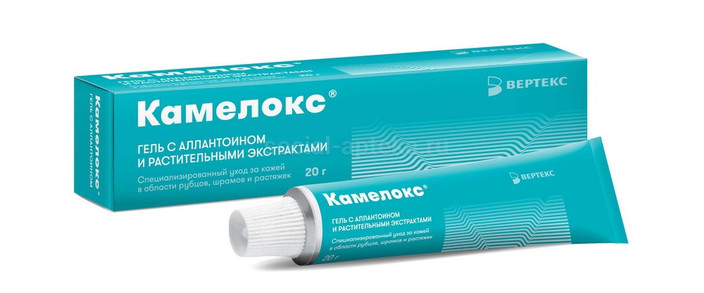 Гель КАМЕЛОКС® с аллантоином способствует регенерации кожи; смягчает кожу и повышает её эластичность; улучшает внешний вид растяжек и рубцовой ткани; стимулирует выработку коллагена, ограничивает размножение клеток рубцовой ткани.