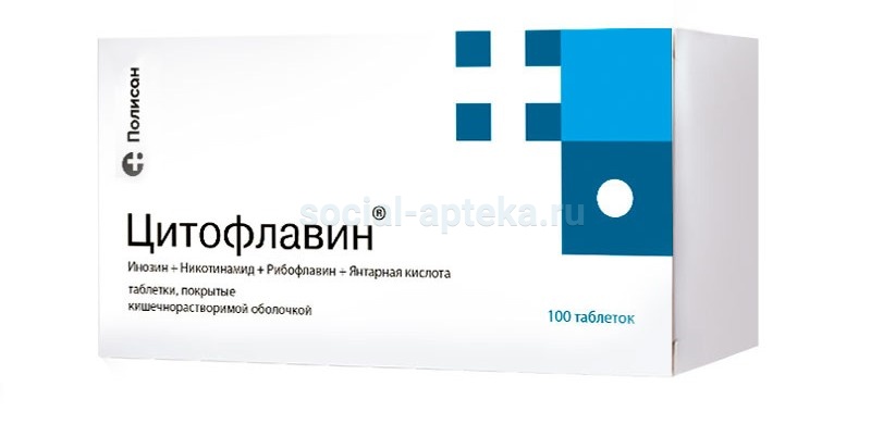 Таким образом, все компоненты препарата ЦИТОФЛАВИН® являются естественными метаболитами организма и стимулируют тканевое дыхание. Метаболическая энергокоррекция, антигипоксическая и антиоксидантная активность препарата, определяющие фармакологические свойства и лечебную эффективность составляющих, обусловлены взаимодополняющим действием янтарной кислоты, инозина, никотинамида и рибофлавина.