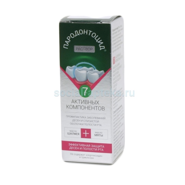 Пародонтоцид – обладает противомикробным, болеутоляющим и местным противовоспалительным действием.