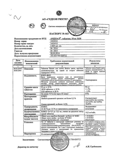 Фармгруппа: Антипсихотический препарат (нейролептик). Фармдействие: Амдоал - антипсихотический препарат (нейролептик). Считается, что терапевтическое действие арипипразола при шизофрении обусловлено сочетанием частичной агонистической активности в отношении D2-допаминовых и 5НТ1а-серотониновых рецепторов и антагонистической активностью в отношении 5НТ2-серотониновых рецепторов. Арипипразол обладает высоким сродством in vitro к D2- и D3-допаминовым рецепторам, 5НТ1а- и 5НТ2а-серотониновым рецепторам и умеренным сродством к D4-допаминовым, 5НТ2с- и 5НТ7-серотониновым, α1-адренорецепторам и Н1-гистаминовым рецепторам. Арипипразол характеризуется также умеренным сродством к участкам обратного захвата серотонина и отсутствием аффинности к мускариновым рецепторам. В экспериментах на животных арипипразол проявлял антагонизм в отношении допаминергической гиперактивности и агонизм в отношении допаминергической гипоактивности. Взаимодействием не только с допаминовыми и серотониновыми рецепторами объясняются некоторые клинические эффекты арипипразола. Фармакокинетика: Арипипразол быстро всасывается после приема внутрь. Прием пищи не влияет на биодоступность арипипразола. Абсолютная биодоступность при приеме внутрь составляет 87%. Cmax арипипразола в плазме достигается через 3-5 ч. Css достигается через 14 дней. Арипипразол интенсивно распределяется в тканях, кажущийся Vd - 4.9 л/кг. Показатели фармакокинетики арипипразола в равновесном состоянии пропорциональны дозе. При терапевтической концентрации более 99% арипипразола связывается с белками плазмы, главным образом, с альбумином. Главный метаболит арипипразола - дегидроарипипразол, обладает такой же аффинностью к D2-допаминовым рецепторам, как и арипипразол. Не отмечено суточных колебаний распределения арипипразола и его метаболита дегидроарипипразола. AUC в равновесном состоянии дегидроарипипразола составляет 39% от AUC арипипразола в плазме крови. Незначительно подвергается пресистемному метаболизму. Арипипразол является основным компонентом препарата в плазме крови. Арипипразол метаболизируется в печени путем дегидрирования, гидроксилирования и N-дезалкилирования. In vitro дегидрирование и гидроксилирование арипипразола происходит с участием изоферментов CYP3A4 и CYP2D6, а N-дезалкилирование - с участием изофермента CYP3A4. Средний T1/2 составляет примерно 75 ч у быстрых метаболизаторов изофермента CYP2D6 и примерно 146 ч у медленных метаболизаторов. Общий клиренс арипипразола - 0.7 мл/мин/кг, главным образом, за счет выведения печенью. После однократного приема дозы меченого 14С арипипразола, примерно 27% дозы было выделено почками и примерно 60% через кишечник. Менее 1% неизмененного арипипразола определяется в моче и примерно 18% принятой дозы в неизмененном виде выводится через кишечник. Фармакокинетика в особых клинических случаях: С учетом поправки на массу тела фармакокинетика арипипразола и дегидроарипипразола у подростков 13-17 лет соответствовала таковой у взрослых. Не выявлено различий фармакокинетики арипипразола у пожилых и взрослых здоровых добровольцев. Также не выявлено влияния возраста на фармакокинетику у пациентов с шизофренией. Отсутствуют различия фармакокинетики у здоровых мужчин и женщин. Также не выявлено влияния пола на фармакокинетику арипипразола у пациентов с ш