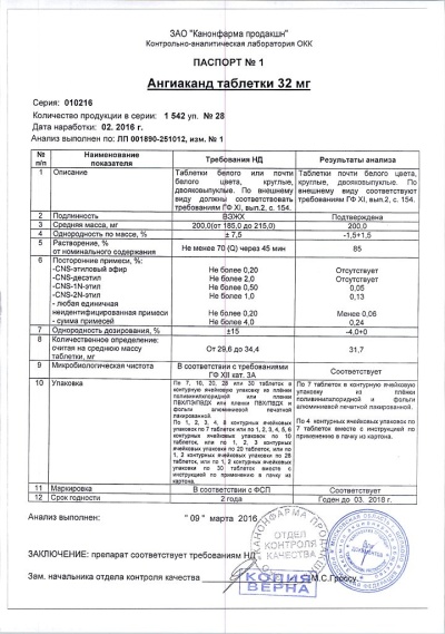 До и во время лечения необходим контроль АД, функции почек (креатинина в плазме крови), содержания калия, лития в сыворотке крови (при комбинированном применении лекарственных средств). Артериальная гипотензия У пациентов с хронической сердечной недостаточностью на фоне терапии препаратом Ангиаканд может развиться артериальная гипотензия. Как и при применении других препаратов, влияющих на РААС, причиной развития артериальной гипотензии у пациентов с артериальной гипертензией может быть уменьшение ОЦК, как наблюдается у пациентов, получающих большие дозы диуретиков. Поэтому в начале терапии следует соблюдать осторожность и, при необходимости, проводить коррекцию гиповолемии. Стеноз почечной артерии У пациентов с двусторонним стенозом почечной артерии или стенозом артерии единственной почки препараты, оказывающие влияние на РААС, в частности ингибиторы АПФ, могут вызывать повышение концентрации мочевины и креатинина в сыворотке крови. Подобные эффекты можно ожидать при назначении антагонистов рецепторов ангиотензина II. Пересадка почки Данные о применении кандесартана у пациентов, недавно перенесших пересадку почки, отсутствуют. Нарушение функции почек На фоне терапии препаратом Ангиаканд, как и при применении других средств, угнетающих РААС, у некоторых пациентов могут отмечаться нарушения функции почек. При применении препарата Ангиаканд у пациентов с артериальной гипертензией и выраженной почечной недостаточностью рекомендуется периодически контролировать содержание калия и креатинина в сыворотке крови. Клинический опыт применения кандесартана у пациентов с тяжелым нарушением функции почек или терминальной стадией почечной недостаточности (КК менее 15 мл/мин) ограничен. У пациентов с хронической сердечной недостаточностью необходимо периодически контролировать функцию почек, особенно у пациентов в возрасте 75 лет и старше, а также у пациентов с нарушением функции почек. При повышении дозы препарата Ангиаканд также рекомендуется контролировать содержание калия и креатинина в плазме крови. Совместное применение с ингибиторами АПФ при хронической сердечной недостаточности При применении препарата Ангиаканд в комбинации с ингибиторами АПФ может увеличиваться риск развития побочных эффектов, особенно нарушения функции почек и гиперкалиемии. В этих случаях необходимо тщательное наблюдение и контроль лабораторных показателей. Общая анестезия и хирургия У пациентов, получающих антагонисты рецепторов ангиотензина II, во время проведения общей анестезии и при хирургических вмешательствах может развиться артериальная гипотензия в результате блокады РААС. Очень редко могут отмечаться случаи тяжелой артериальной гипотензии, требующей внутривенного введения жидкости и/или вазопрессоров. Стеноз аортального и митрального клапана (гипертрофическая обструктивная кардиомиопатия) При применении препарата Ангиаканд, как и других вазодилататоров, пациентам с гипертрофической обструктивной кардиомиопатией или гемодинамически значимым стенозом аортального и/или митрального клапана следует соблюдать осторожность. Первичный гиперальдостеронизм Пациенты с первичным гиперальдостеронизмом обычно резистентны к терапии гипотензивными препаратами, влияющими на активность РААС. В связи с этим преп