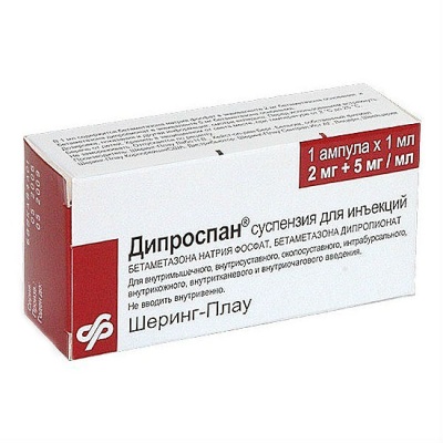 Дипроспан® применяется для в/м, внутрисуставного, околосуставного, интрабурсального, внутрикожного, внутритканевого и внутриочагового введения. Незначительные размеры кристаллов бетаметазона дипропионата позволяют применять иглы небольшого диаметра (вплоть до 26 калибра) для внутрикожного введения и введения непосредственно в очаг поражения. Препарат не предназначен для в/в и п/к введения. Инъекции препарата Дипроспан® следует проводить при строгом соблюдении правил асептики. Режим дозирования и способ введения устанавливают индивидуально, в зависимости от показаний, тяжести заболевания и реакции пациента. При системном применении начальная доза препарата Дипроспан® в большинстве случаев составляет 1-2 мл. Введение повторяют по мере необходимости, в зависимости от состояния пациента. В/м введение Дипроспан® следует вводить глубоко в/м, выбирая при этом крупные мышцы и избегая попадания в другие ткани (для предотвращения атрофии тканей). При тяжелых состояниях, требующих неотложной терапии, начальная доза составляет 2 мл. При различных дерматологических заболеваниях, как правило, достаточно введения 1 мл суспензии Дипроспана. При заболеваниях дыхательной системы начало действия препарата наступает в течение нескольких часов после в/м инъекции суспензии. При бронхиальной астме, сенной лихорадке, аллергическом бронхите и аллергическом рините существенное улучшение состояния достигается после введения 1-2 мл Дипроспана. При острых и хронических бурситах начальная доза для в/м введения составляет 1-2 мл суспензии. При необходимости проводят несколько повторных инъекций. Если удовлетворительный клинический ответ не наступает через определенный промежуток времени, Дипроспан® следует отменить и назначить другую терапию. Местное введение При местном введении одновременное применение местноанеcтезирующего препарата необходимо лишь в редких случаях. Если оно требуется, то применяют 1% или 2% растворы прокаина гидрохлорида или лидокаина, не содержащие метилпарабен, пропилпарабен, фенол и другие подобные вещества. При этом смешивание производят в шприце, сначала набирая в шприц из флакона требуемую дозу суспензии препарата Дипроспан®. Затем в этот же шприц набирают из ампулы требуемое количество местного анестетика и встряхивают в течение короткого времени. При острых бурситах (субдельтовидном, подлопаточном, локтевом и преднадколенниковом) введение 1-2 мл суспензии в синовиальную сумку облегчает боль и восстанавливает подвижность сустава в течение нескольких часов. После купирования обострения при хронических бурситах применяют меньшие дозы препарата. При острых тендосиновитах, тендинитах и перитендинитах одна инъекция препарата Дипроспан® улучшает состояние больного; при хронических - инъекцию повторяют в зависимости от реакции пациента. Следует избегать введения препарата непосредственно в сухожилие. Внутрисуставное введение препарата Дипроспан® в дозе 0.5-2 мл снимает боль, ограничение подвижности суставов при ревматоидном артрите и остеоартрозе в течение 2-4 ч после введения. Длительность терапевтического действия значительно варьирует и может составлять 4 и более недель. Рекомендуемые дозы препарата при введении в крупные суставы составляют от 1 до 2 мл; в средние суставы - 0.5-1 мл; в мелкие суставы - 0
