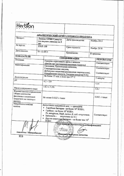 Вспомогательные вещества: сахароза, кислота лимонная безводная, глицерин, метилпарагидроксибензоат, пропилпарагидроксибензоат, пропиленгликоль, масло мяты перечной, масло гвоздичное, вода очищенная.