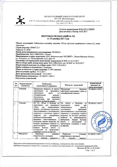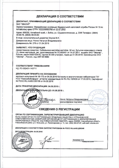 Препарат растительного происхождения. Сабельника настойка оказывает выраженное противовоспалительное и анальгезирующее действие.
