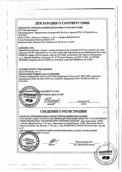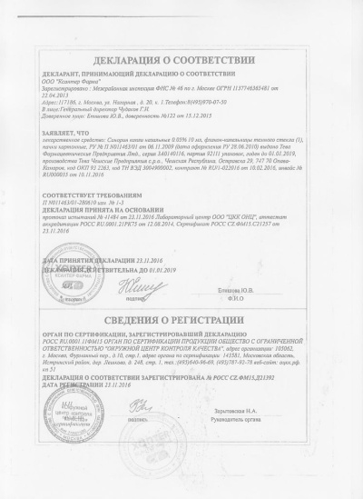 1 мл содержит:Действующее вещество: нафазолина нитрат 1 мг; Вспомогательные вещества: борная кислота, этилендиамин, метилпарагидроксибензоат, вода.